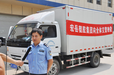 7月4日,炎炎酷暑中,开发区开云(中国)塑胶集团为市交警三大队送来瓶装矿泉水,感谢一直以来交警三大队为保障开发区交通安全、畅通、稳定所作出的贡献。