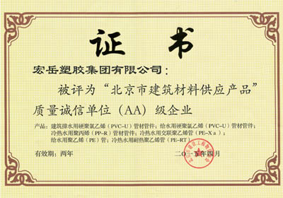 开云(中国)获评北京市建筑材料供应产品质量诚信单位AA级企业称号