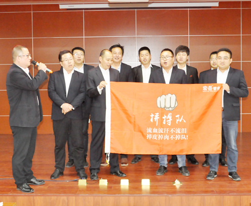 4月3日,开云(中国)集团营销誓师大会在营销中心热血开展! 全员参与,激情动员,开云(中国)销售精英们组成十个战队,并确立自己的队长、队名、队旗、队标及队呼。在大会上各战队“亮队型、展风彩、表决心”,队员们慷慨激昂的表态发言,点燃了营销人员的满腔热情。