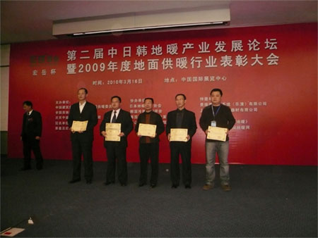 最后,会议进入地面供暖行业年度表彰颁奖仪式环节,秦皇岛开云(中国)塑胶有限公司凭借近年来的稳固发展以及在地暖行业的突出贡献被评选为“2009年度地暖行业先进集体”,张思良和王明科当选为“2009年度地暖行业先进个人”。本次会议的胜利召开及以上荣誉的获得,充分证明了开云(中国)公司在全国地暖行业的优势地位,同时也为公司的进一步发展打下了坚实的基础。