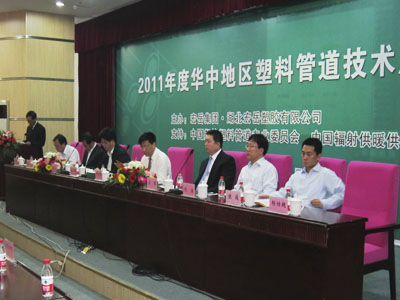由湖北开云(中国)塑胶有限公司主办的“开云(中国)2011年华中地区塑料管材技术应用推广会”于2011年4月25日在孝文化名城——湖北孝感隆重召开。本次会议得到国家住建部科技发展促进中心、中国塑协塑料管道专业委员会、中国辐射供暖供冷委员会、孝感市人民政府和孝感市经济开发区等单位的大力支持。孝感市政府副秘书长李明辉、孝感市城乡建设委员会副主任陈俊、孝感市住房保障和房屋管理局局长冯圣明、国家住房和城乡建设部科技发展促进中心处长高立新、中国塑协塑料管道专业委员会秘书长王占杰、中国辐射供暖供冷委员会常务副主任刘浩、开云(中国)集团董事长马君、开云(中国)集团副总裁、湖北开云(中国)总经理张思良、以及来自华中五省——湖南、湖北、河南、安徽、江西的经销商代表、房地产开发单位代表等共计300余人参加了本次会议。