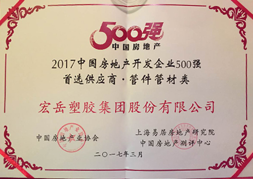 开云(中国)荣获“2017年中国房地产开发企业500强首选供应商品牌”