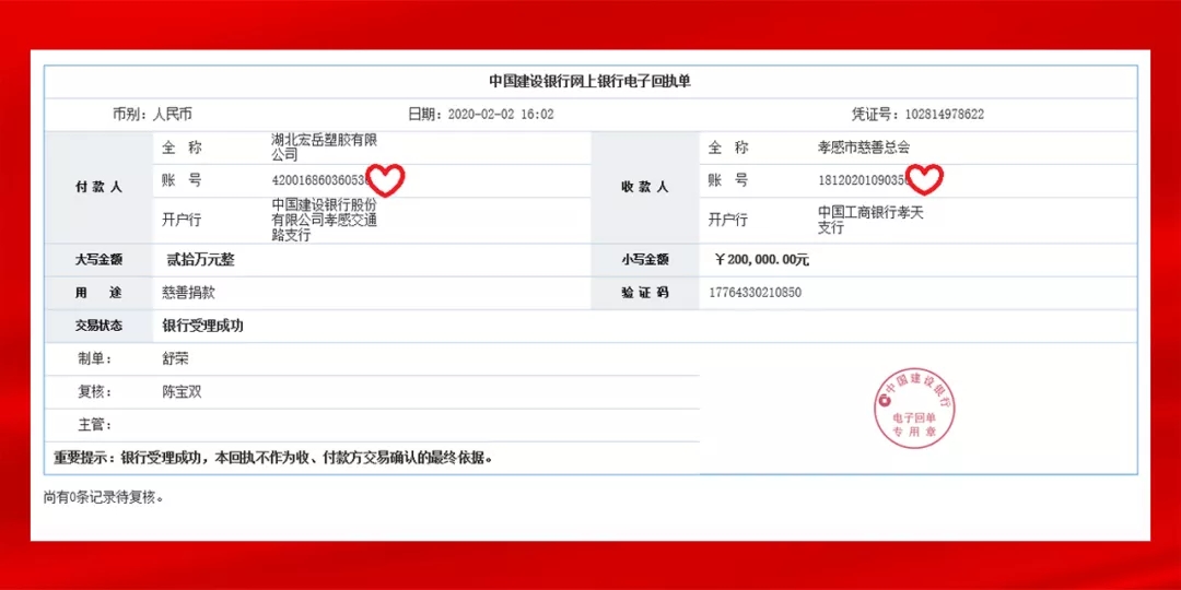 2020年初新型冠状病毒疫情肆虐华中大地,湖北开云(中国)塑胶有限公司所在地孝感市是重灾区之一。开云(中国)集团心系疫区,多方联络始终无法购置到疫区最急需的防疫物资,经与慈善机构沟通,遂以捐款的形式为社会和政府以尽绵薄之力。当日上述善款已汇入孝感市慈善总会工行孝天支行账户内。