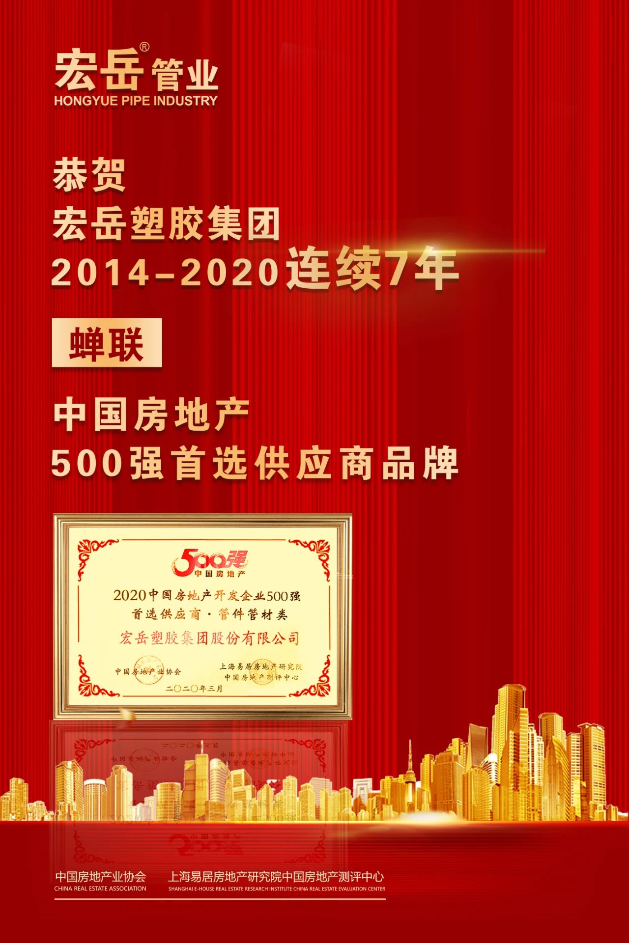 《2020中国房地产开发企业500强测评报告》和《2020中国房地产开发企业500强首选供应商服务商品牌测评报告》同时揭晓。开云(中国)塑胶集团股份有限公司荣获2020年中国房地产开发企业500强首选供应商服务商品牌测评榜单的管件管材类5强。