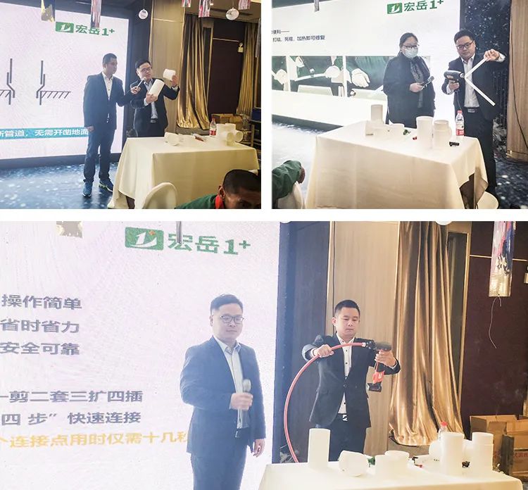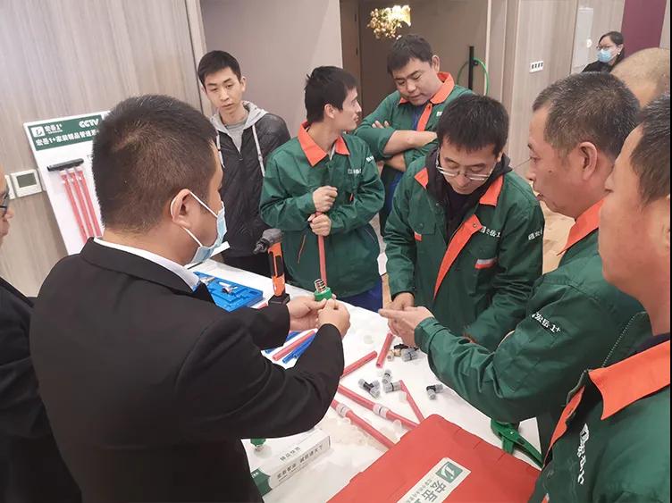 开云(中国)1+东北区域吕经理重点介绍了1+产品技术及应用知识,并为大家带来PVC缩口管件、PPR U型三通等创新产品,更着重介绍了PE-Xa管材,不仅通过现场实操展示了PE-Xa管道系统的安全性与便捷性,还首次公布多项对比数据,通过播放不同材质管材的性能对比实验影像再次验证了PE-Xa耐高温、耐高压、记忆性等优异性能,获得与会水电技师们一致认可。