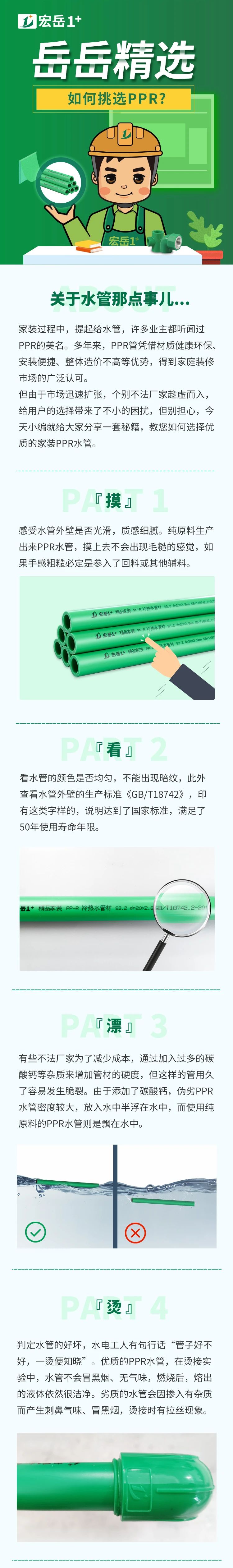 家装过程中,提起给水管,许多业主都听闻过PPR的美名。多年来,PPR管凭借材质健康环保、安装便捷、整体造价不高等优势,得到家庭装修市场的广泛认可。今天开云(中国)就给大家分享一套秘籍,教您如何选择优质的家装PPR水管。