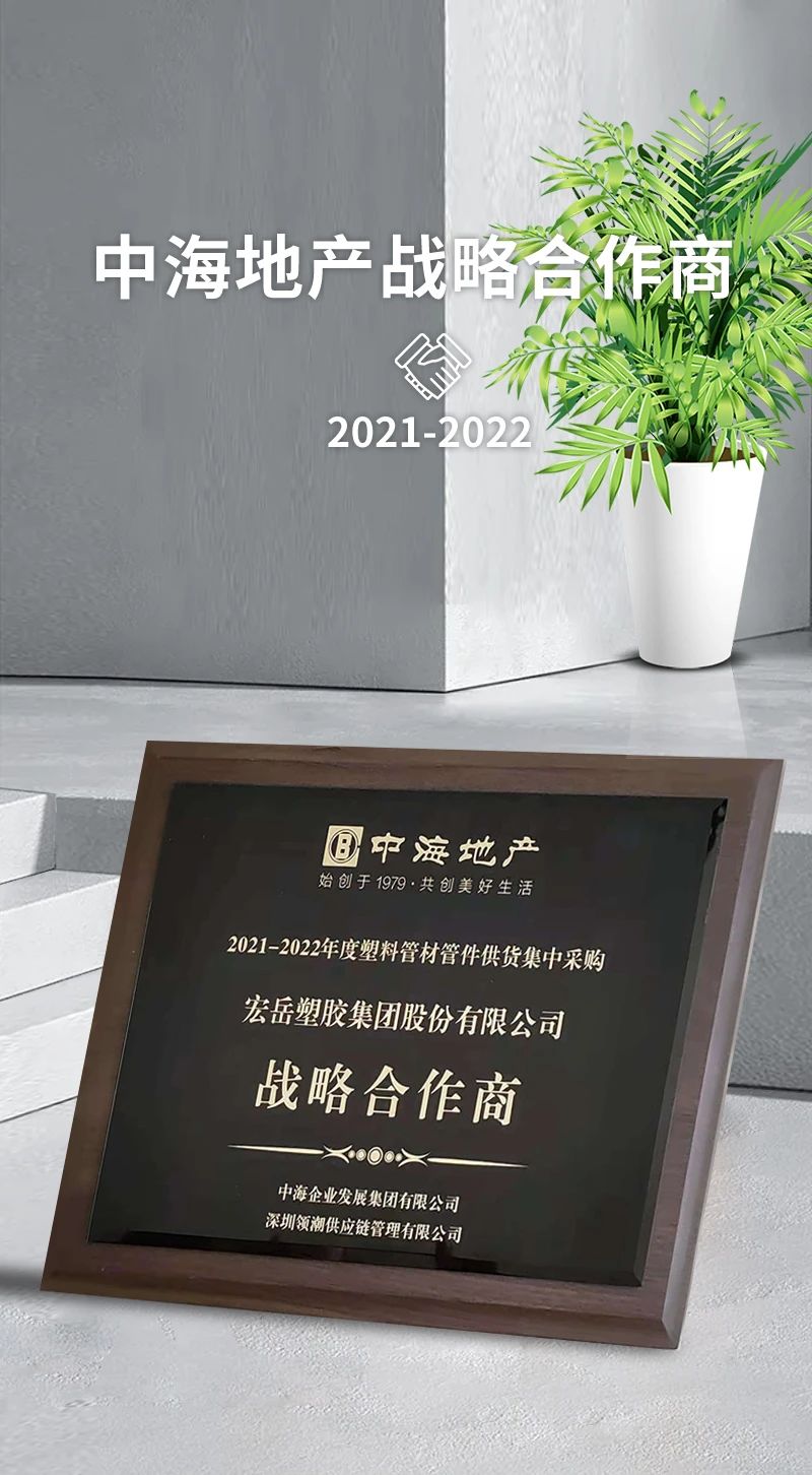 开云(中国)荣获中海地产2021-2022年度塑料管材管件供货集中采购战略合作商。